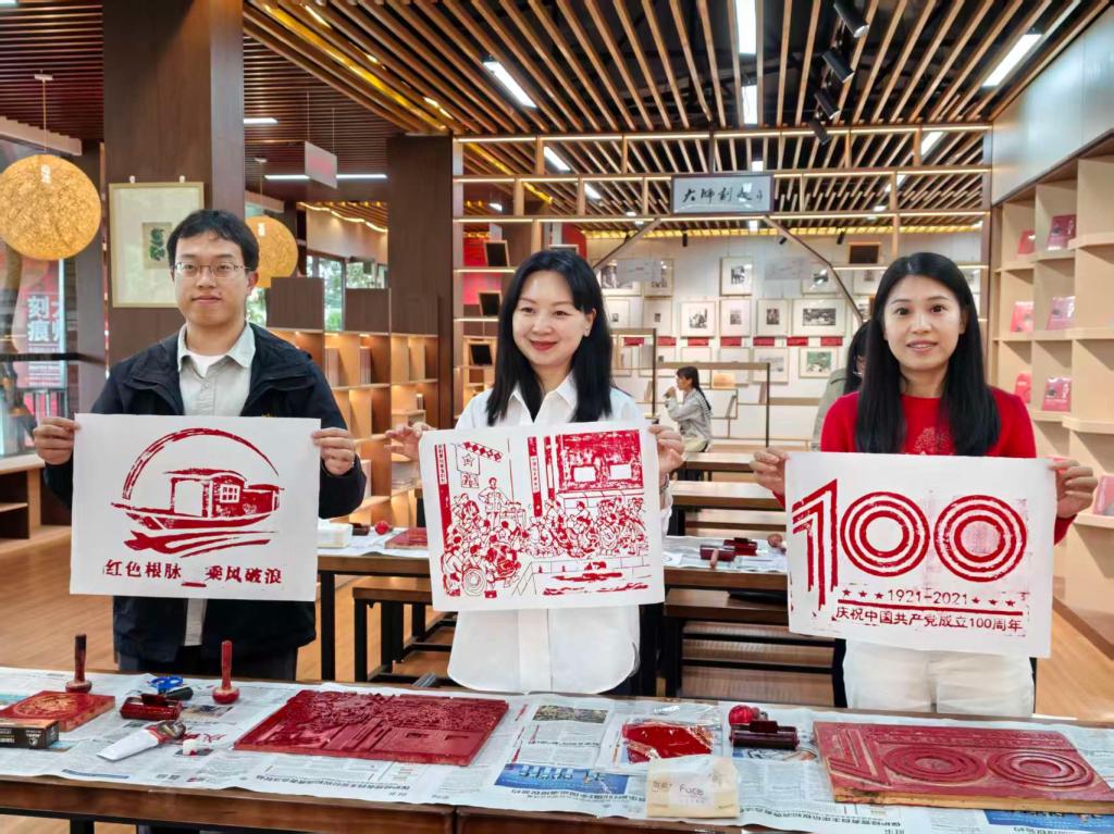 随后,党员同志们参与红色版画拓印体验活动,在专业人员指导下动手创作红色主题作品,以艺术形式感悟革命精神、传承红色基因,在实践中增强党员意识、强化责任担当。