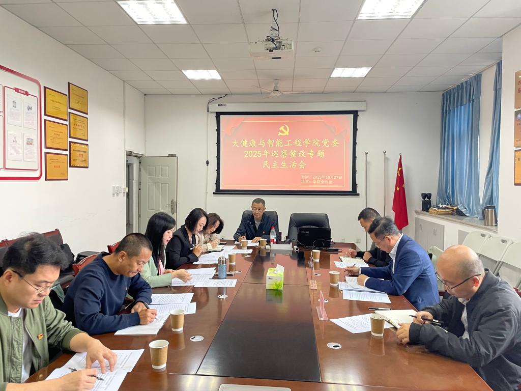 根据学校党委巡察工作统一部署,10月27日,大健康与智能工程学院党委召开2025年巡察整改专题民主生活会。学校党委副书记、校长潘克俭出席会议,党委组织部副部长刘伟,驻校纪检监察组办公室副主任、校纪委办公室副主任蒲颖,学院党委领导班子全体成员参加会议。
