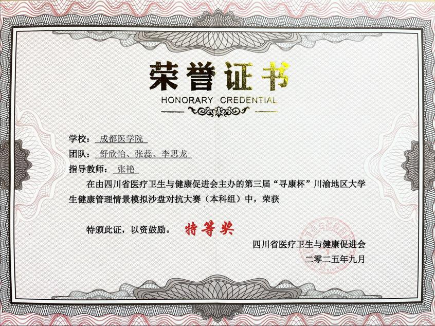 此次队伍的组建是在2025年9月27日川渝地区赛事中筛选,我校团队“无敌冲锋队”队员舒欣怡、张蕊、李思龙,在张艳老师指导下,经赛事前期方案分析、视频拍摄指导、沙盘模拟系统备赛,以川渝赛区“特等奖”的成绩,代表成都医学院成功晋级参加全国总决赛。