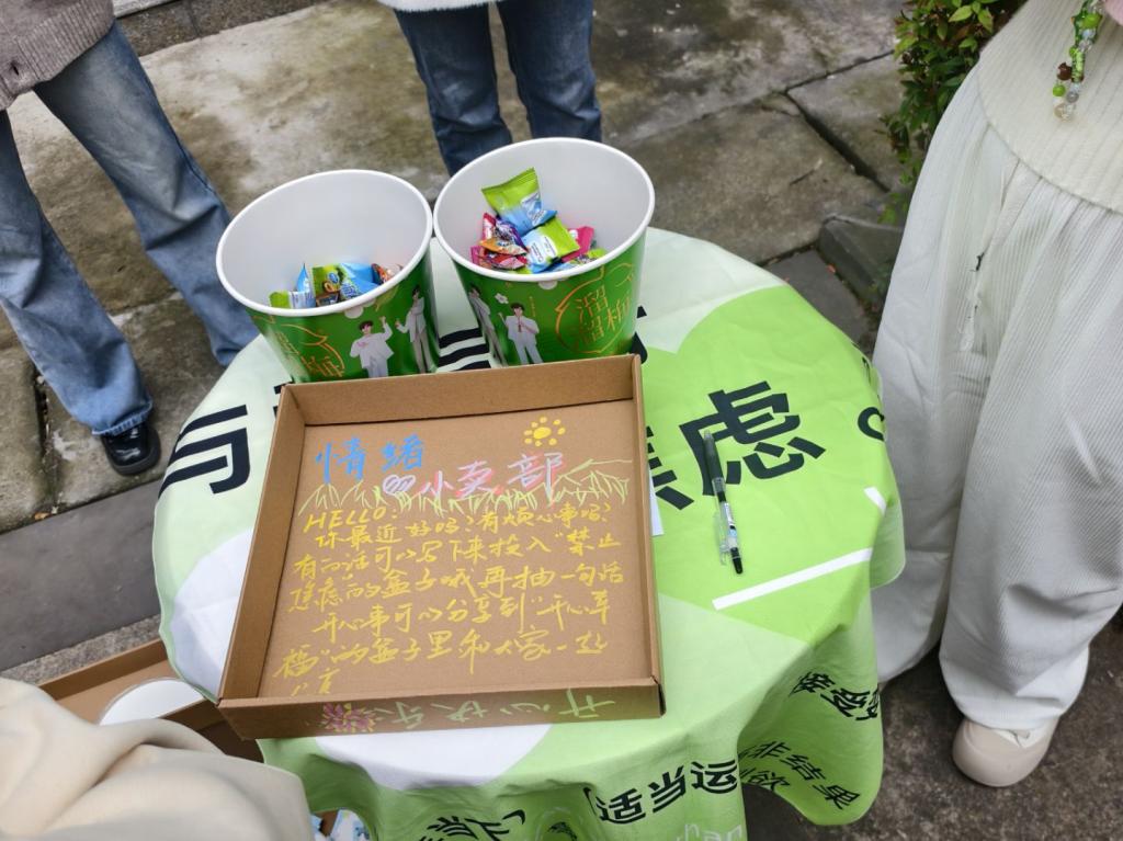 活动伊始,同学们陆续来到现场,他们带着或沉重或迷茫的心情,将自己近期的烦恼、焦虑或困惑认真地书写在便签纸上,投入“焦虑盒子”中。这一刻,象征着暂时“寄存”或“释放”内心的负面情绪,仿佛将那些沉重的包袱暂时放在了这个安全的地方。紧接着,他们怀着期待的心情,从“安慰盲盒”里随机抽取一张由其他参与者预先写下的鼓励便签,感受来自他人的温暖与力量。参加活动的陈同学说到:“当我从盲盒里抽出那张写着‘别担心,一切都会好起来的’纸条时,心里突然涌上一股暖流,好像真的没那么焦虑了。”另一位李同学也分享道:“把自己的烦恼写下来,再收到别人的鼓励,这种互动让我觉得不再孤单,面对困难也更有勇气了。”